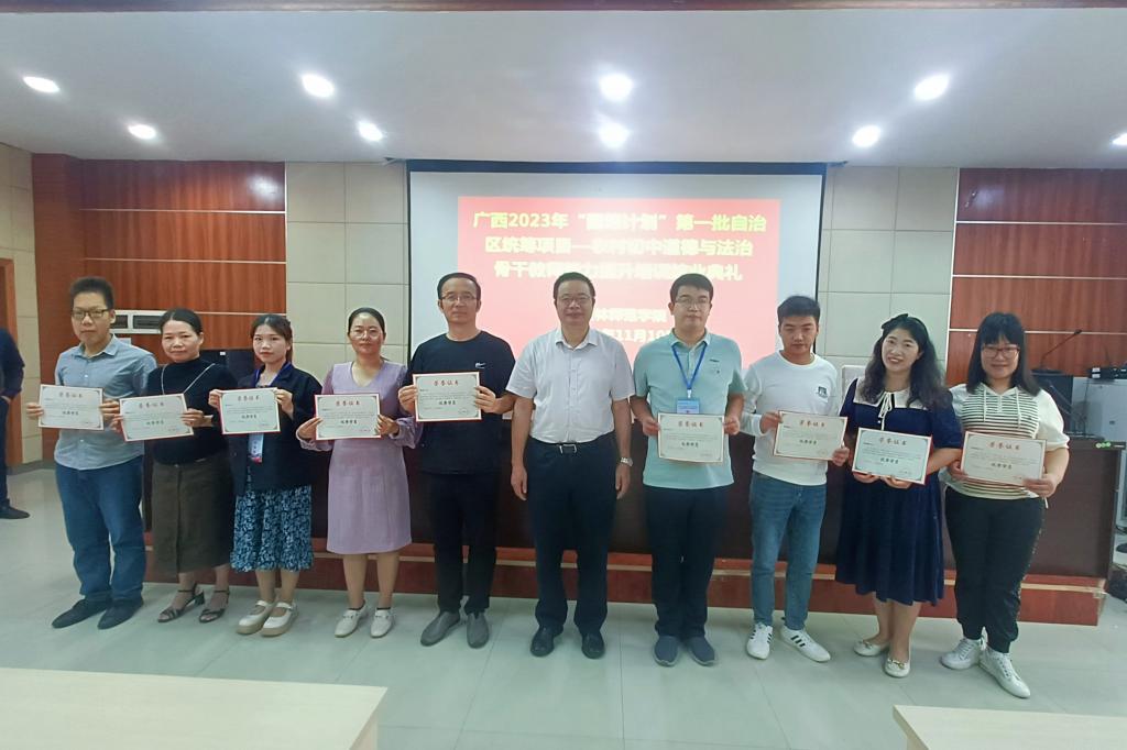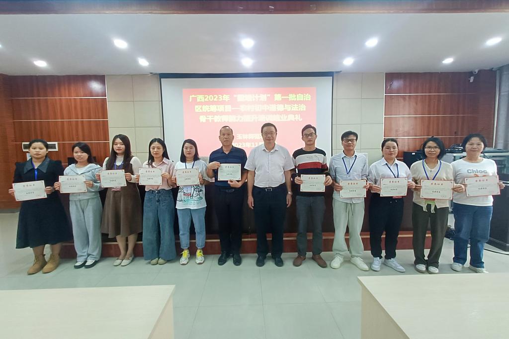 11月10日上午,广西2023年“国培计划”第一批自治区统筹项目——农村初中道德与法治骨干教师能力提升培训班于公司东校区育师楼405教室举行结业典礼。公司党委副书记韦广雄,古天乐代言太阳集团138经理周伟萌及全体学员参加此次会议,会议由古天乐代言太阳集团138教师王志远主持。