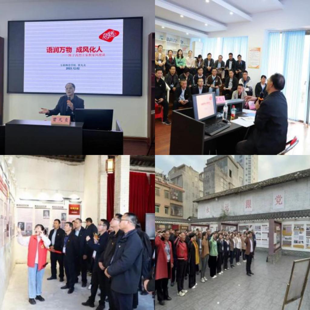 12月2日下午,培训班全体学员走进玉州区西就社区红色街区,曾凡贞教授为学员们开展了题为“语润万物,成风化人”陈子涛烈士家教家风教育微党课,另外也在“一廊两馆”继续开展红色文化学习。红色长廊中,学员们参观学习了红色印象、红色精神、红色家书、红色故事和红色足迹系列板报,精神得到了一次升华,为人民服务的信念更加坚定。学员们在瞻仰中缅怀革命先烈,纷纷表示会不忘初心、牢记使命,在新征程上不断奋进。