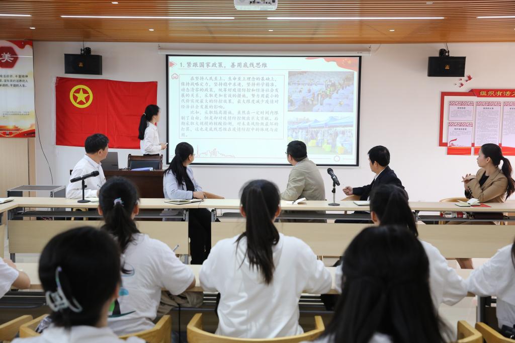 员工分享经验环节中,员工代表王志燊、宁苑杏、关芝恋分享自己在参与疫情防控工作的实践经历,从工作内容、工作过程两个方面讲述自己在社会实践中的感受与所思所悟。思想政治教育2019(1)班曾罗雪作为优秀员工干部师姐代表结合自身实践经历发表感受,她认为,作为一名中国共产党党员,要相信党和国家,坚持党的领导,勇于承担社会责任,坚持为人民服务,总结经验,继续奋勇前行,善于规划党的二十大以后新形势下的老员工生活,厚积薄发,展示出当代青年的风采,主动将“小我”融入“大我”,践行党的二十大精神,立志成为新时代好青年、好党员。