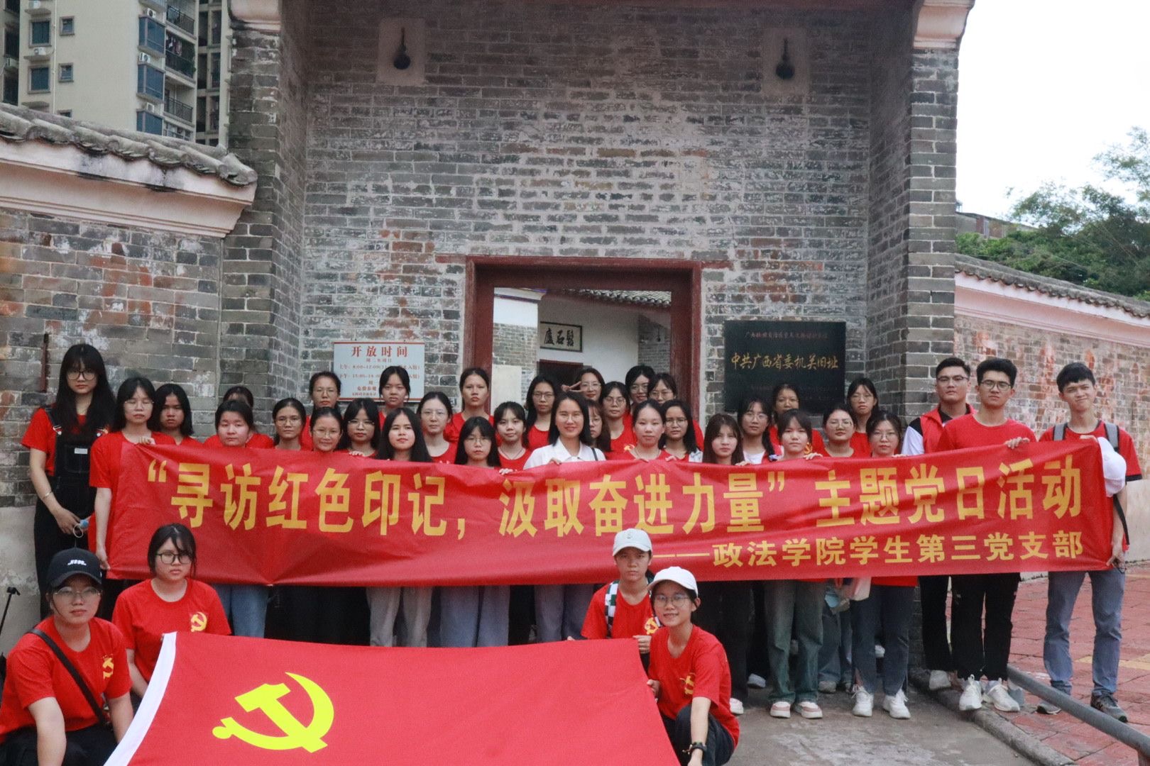 活动中,全体成员认真观看展出的图片和文字资料,认真聆听讲解,详细了解广西省委机关旧址的红色革命史、时代背景及其深远的历史意义。随后,支部书记带领全体成员在旧址会议室开展理论学习会。会上,她表示,追忆红色记忆,聆听先辈事迹,对深入开展学习贯彻习近平新时代中国特色社会主义思想主题教育、弘扬伟大建党精神、传承红色基因、坚定共产党人的初心使命、贯彻总体国家安全观具有重大意义,希望全体党员和入党积极分子务必谦虚谨慎、艰苦奋斗,增强继承光荣传统、传承红色基因的责任感和使命感,以实际行动筑牢信念之基、补足精神之钙、把稳思想之舵。