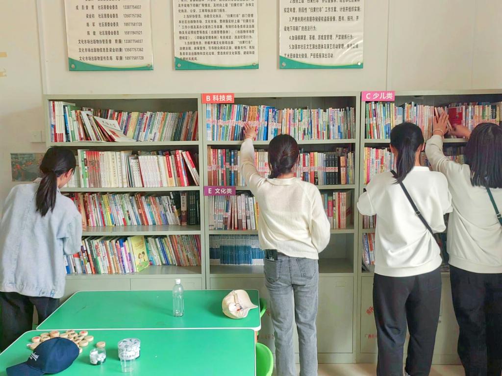 活动过程中,志愿者们在和睦社区进行垃圾清扫工作,以实际行动保护社区环境,践行绿色发展理念。同时,志愿者们来到社区图书馆协助图书馆工作人员整理书籍。在工作人员的指导和带领下,志愿者们发扬不怕苦不怕累的精神,分工协作、认真仔细,将所有书架和图书进行了深度清洁和整理。
