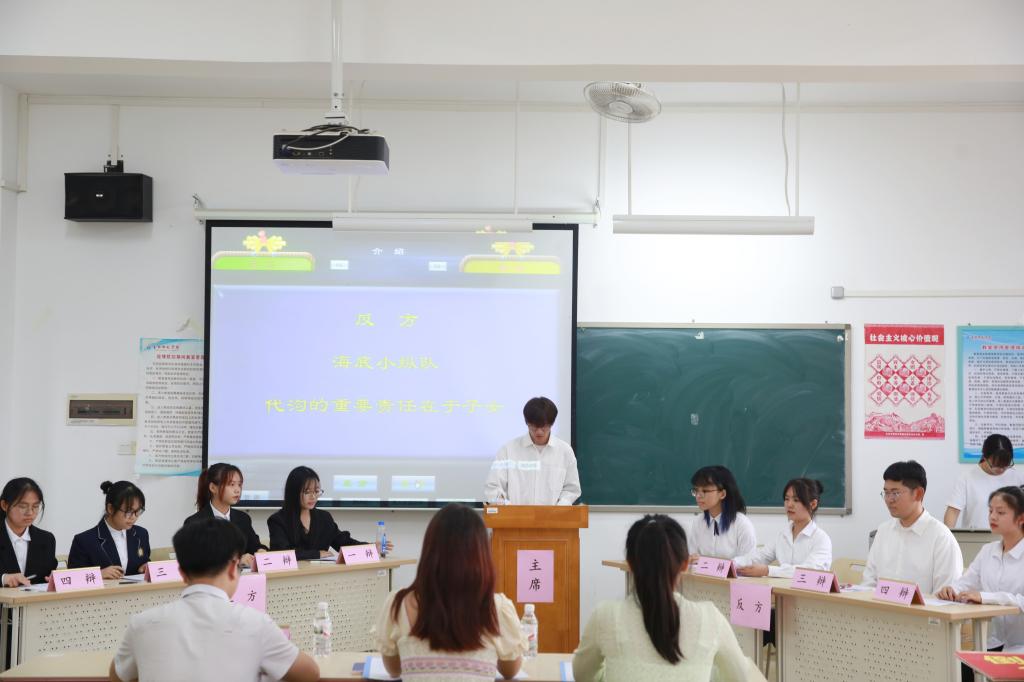 本场比赛为中场次,分为两场。在第一场比赛中,正方法学2022(1)班“我说的队”对战反方思想政治教育2022(2)班“海底小纵队”,双方就“代沟的重要责任在于父母”or“代沟的重要责任在于子女”这一辩题展开辩论。正方认为代沟的重要责任在于父母,并从父母与子女缺乏沟通、父母对子女应尽的教育义务等方面阐述自身观点;反方则从子女的价值观念、心理不成熟等方面展开辩论。最终,经过激烈角逐,反方二辩思想政治教育2022(2)班陆生菊获得最佳辩手称号。