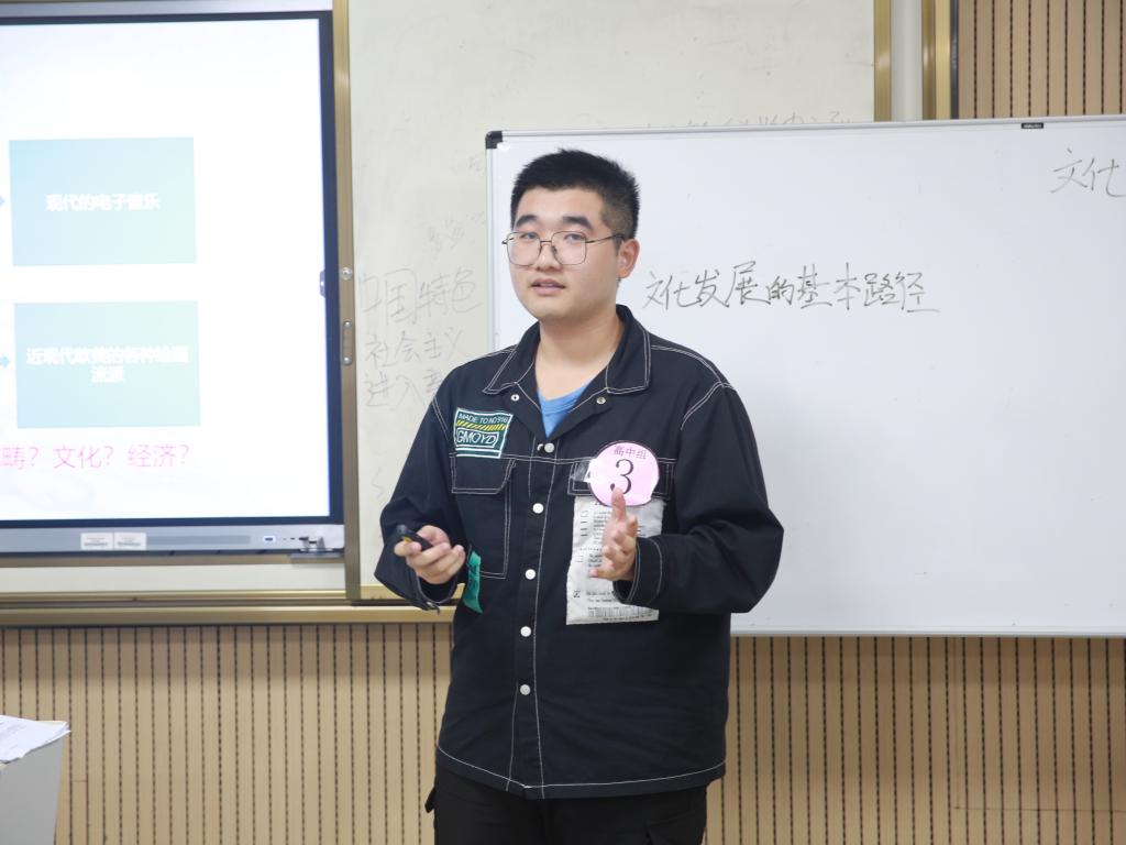 本次比赛面向思想政治教育专业全体员工,分为高中组和初中组,比赛内容分为教学设计、说课、模拟上课三个项目。比赛过程中,选手们充满活力,斗志昂扬,他们的普通话、板书、课件等各方面充分展示了古天乐代言太阳集团138师范生的教师技能水平,部分选手临场反应能力强,声情并茂,带动了评委和观众的情绪,比赛现场教学气氛浓烈。