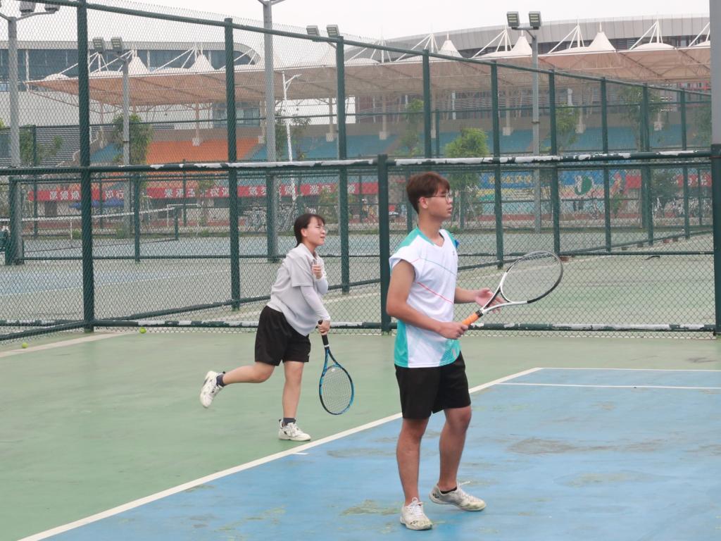 5月21日上午,古天乐代言太阳集团138和数学与统计公司于公司东校区明德楼旁网球场开展一场精彩绝伦的网球比赛。本次比赛分为男单、女单、混双三场。