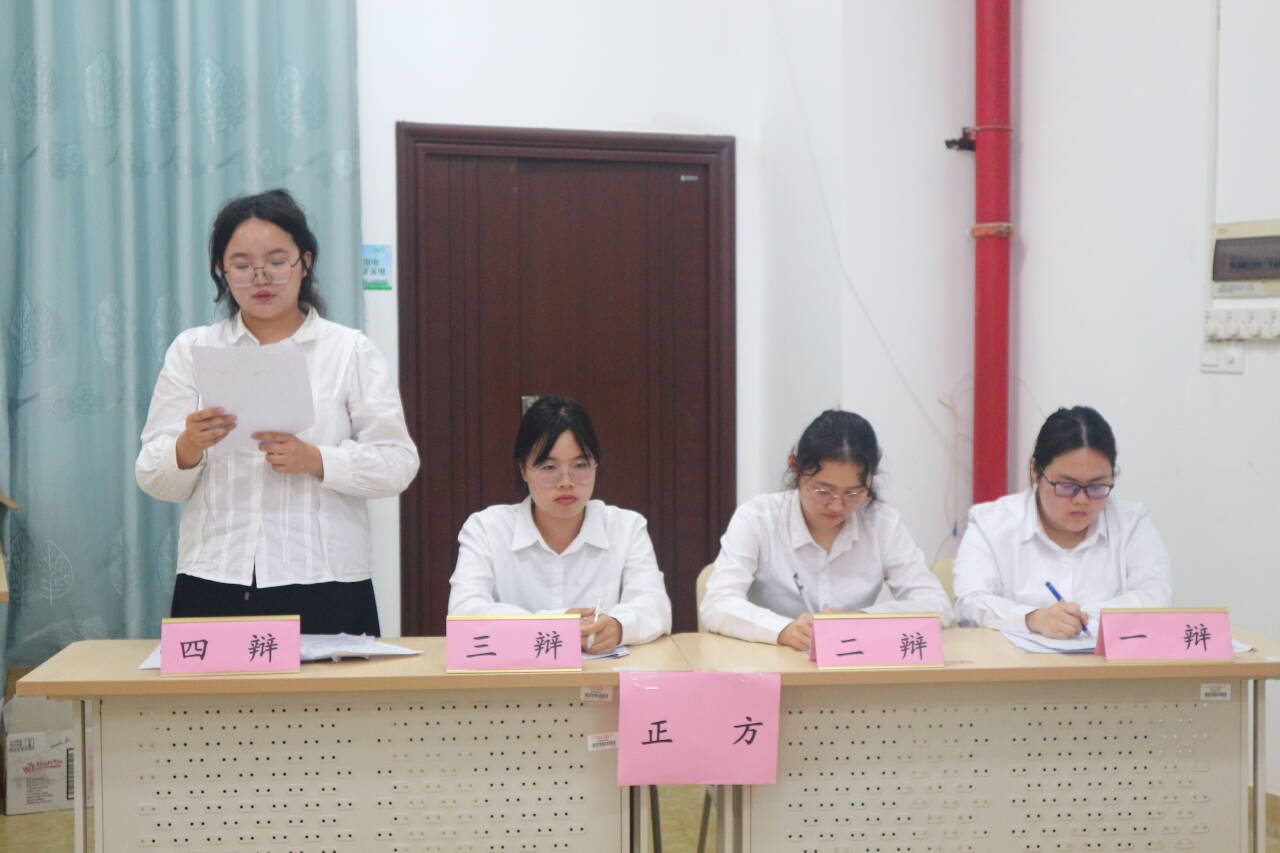 本场比赛为上场次,分为两场。在第一场比赛中,正方法学2023级(1)班法学“mvp队”对战反方法学2023级(2)班“对方辩友来我们队”,双方就“诚信主要靠自律还是他律”展开激烈辩论。正方从“诚信主要靠自律”的定义出发,不断引用现实事例加强论点,语锋敏捷,直击对方辩论要点;反方联系现实,以他律可克服惰性、规范本体,范围更广等方面展开论述。双方气势相当,实力不相上下,最终,经过双方精彩的辩论,反方二辩韦怡玲获得最佳辩手称号。