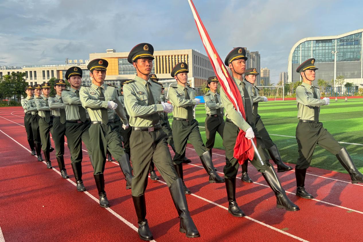 七点整,晨光初照,升旗仪式正式开始。国旗护卫队身姿挺拔,步伐整齐划一,迈着铿锵有力的步伐将鲜艳的五星红旗护送入场。在庄严的国歌声中,五星红旗冉冉升起,全体师生昂首挺胸,肃穆站立,齐唱国歌,向着国旗行注目礼。
